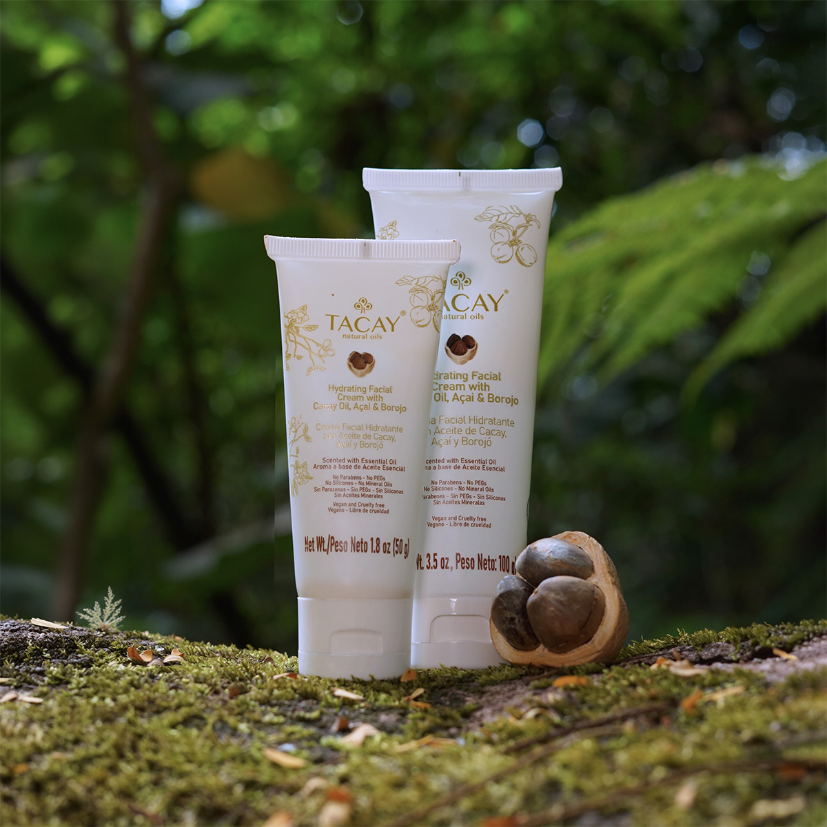 TACAY Facial Moisturizing Cream is a cosmetic product designed to improve the appearance of the skin on the face and neck. It is formulated with Cacay Oil, Açaí, and Borojó, developed under responsible processes to preserve the characteristics of its ingredients.