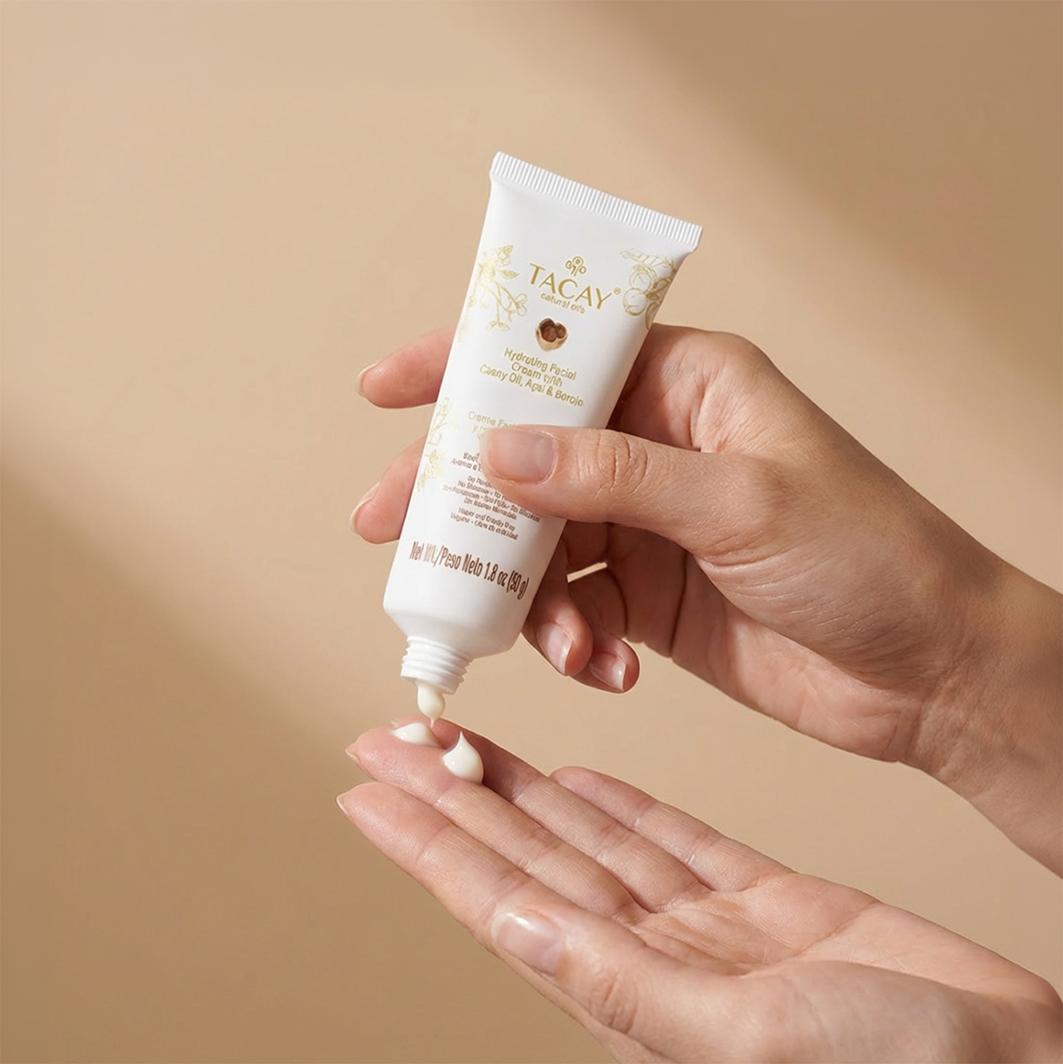 TACAY Facial Moisturizing Cream features a lightweight, fast-absorbing texture that helps hydrate the skin without leaving a greasy feel. It blends easily into face and neck care, providing a feeling of softness and comfort from the first application.